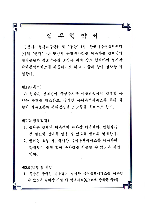 - MOU명 안성시시설관리공단-안성시수어통역센터 상호 협력 업무협약 체결
