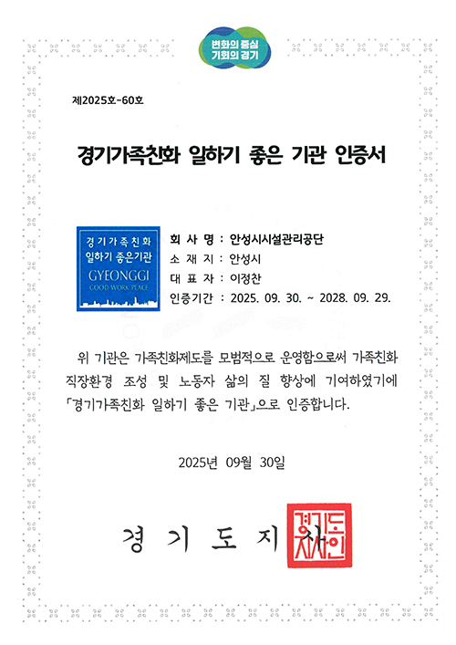 경기가족친화 일하기 좋은 기관